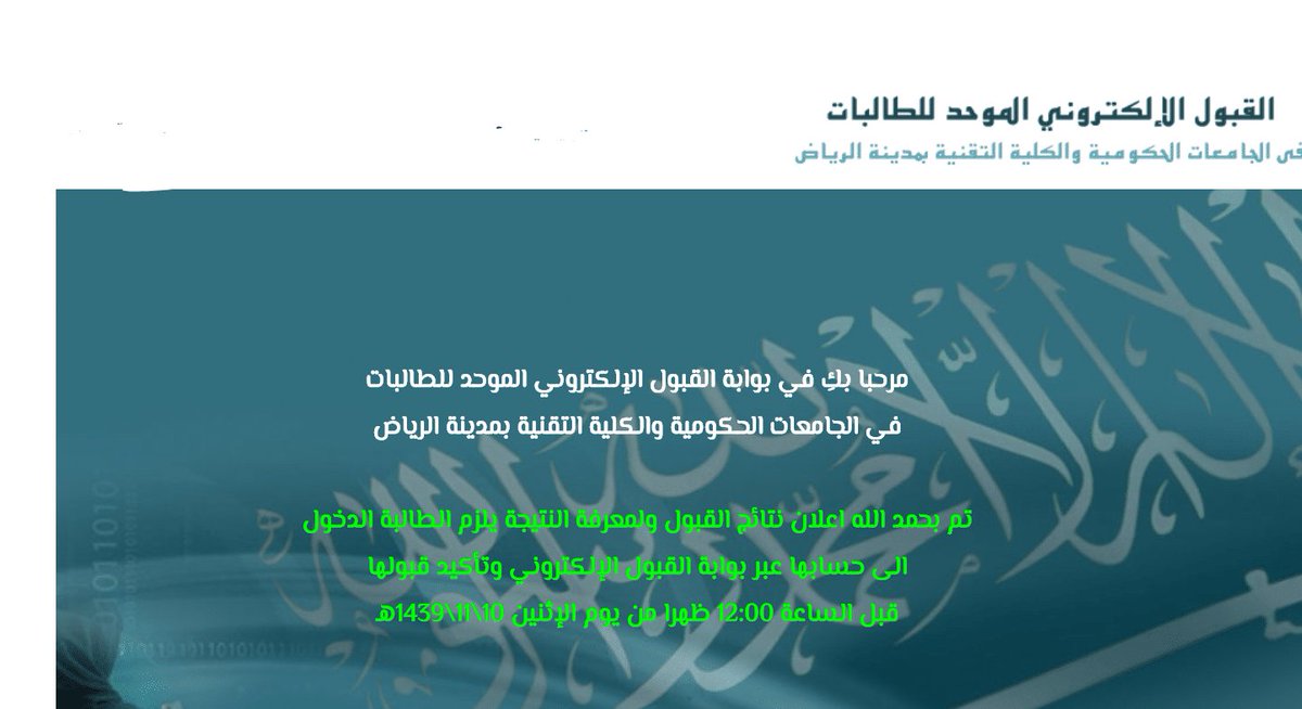 إعلان مواعيد القبول والتخصصات على بوابة القبول الإلكتروني الموحد للطالبات في الجامعات الحكومية بالرياض